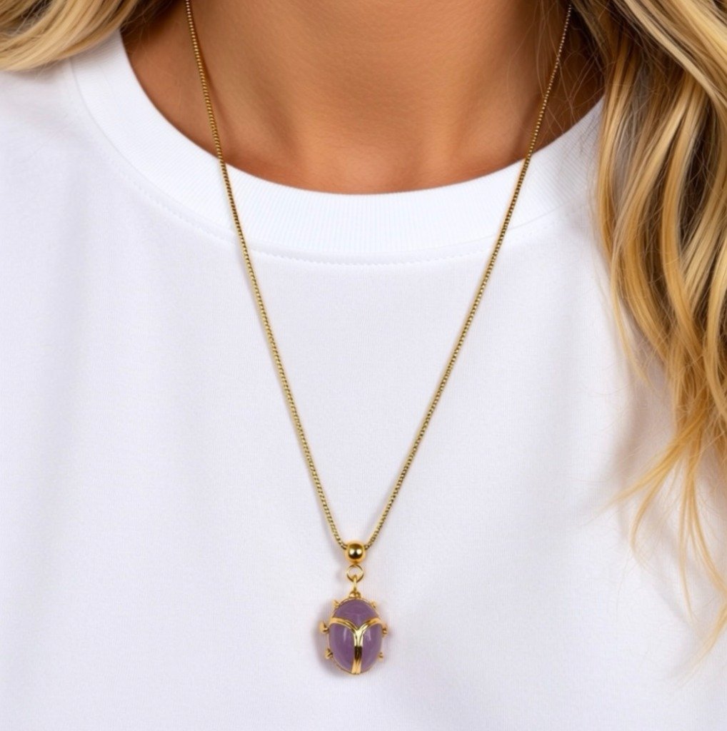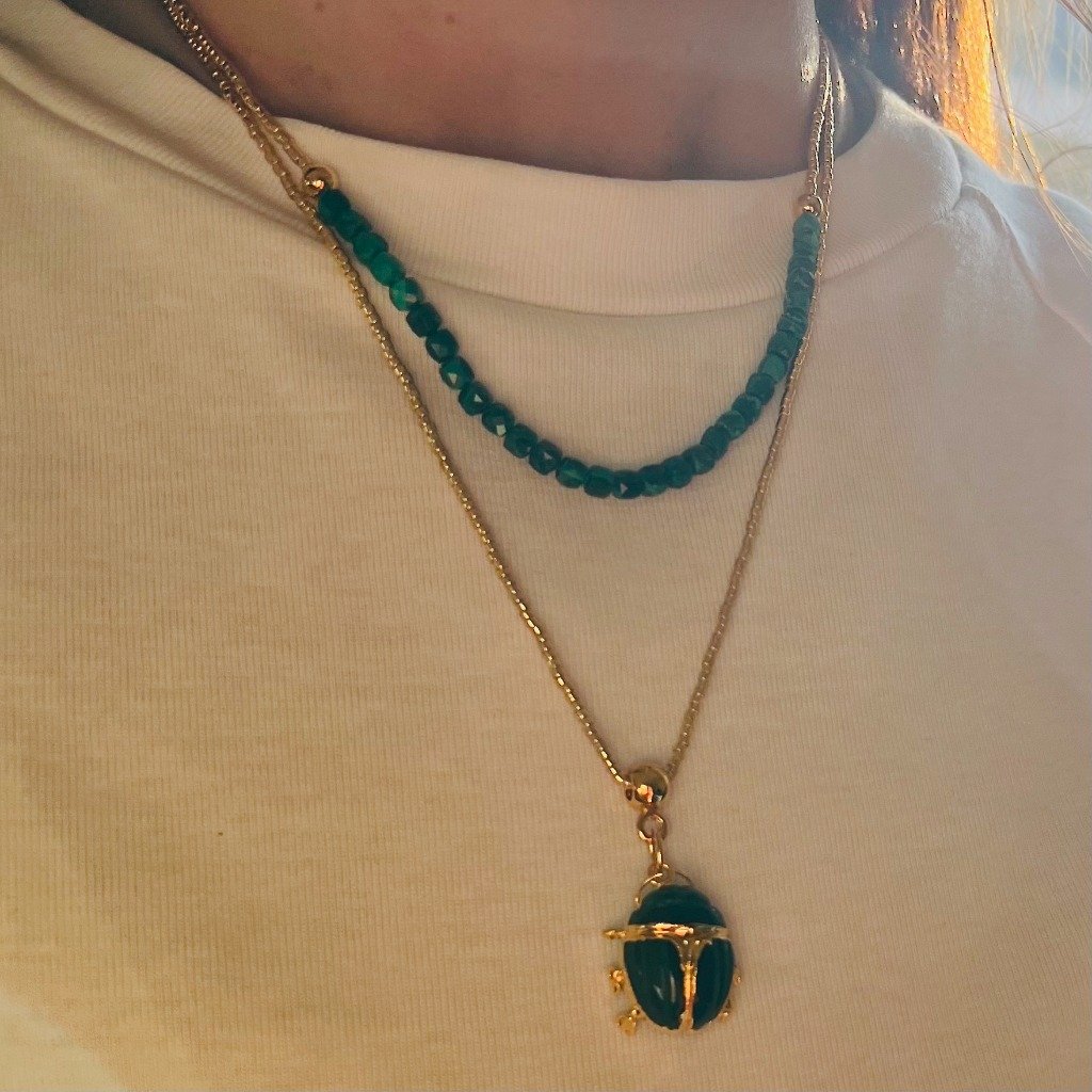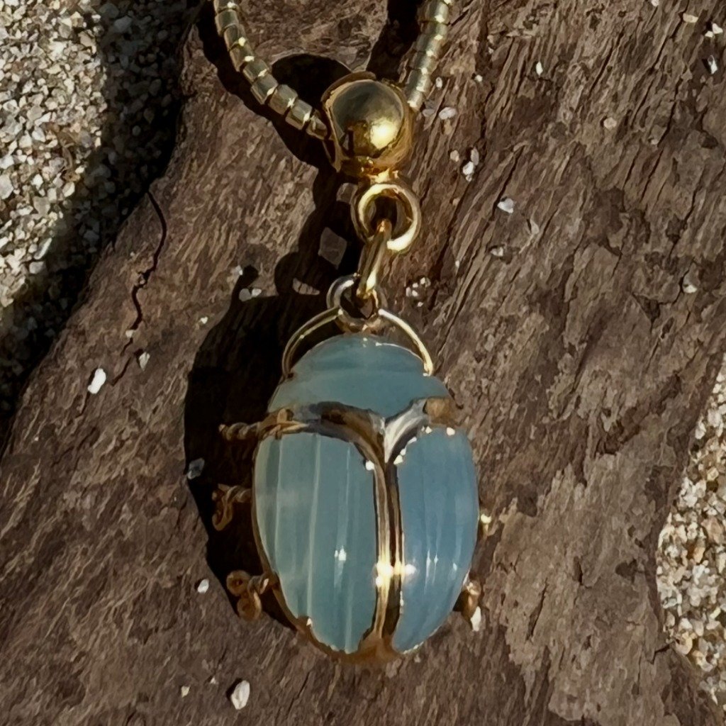 Collier Scarabée Calcédoine d'eau